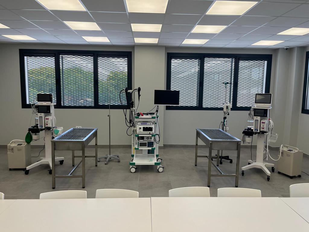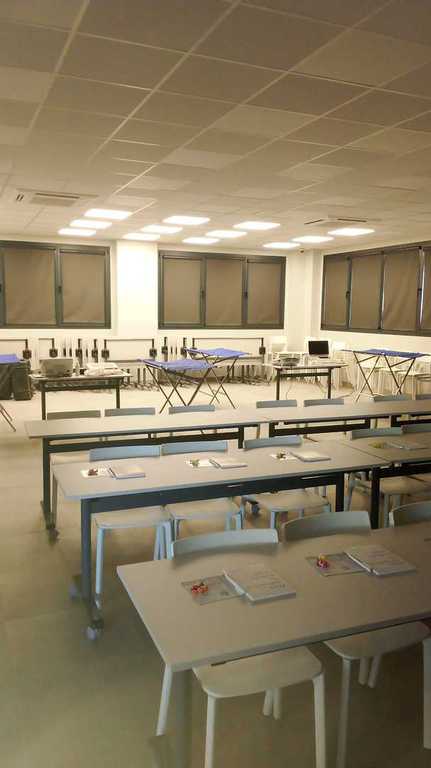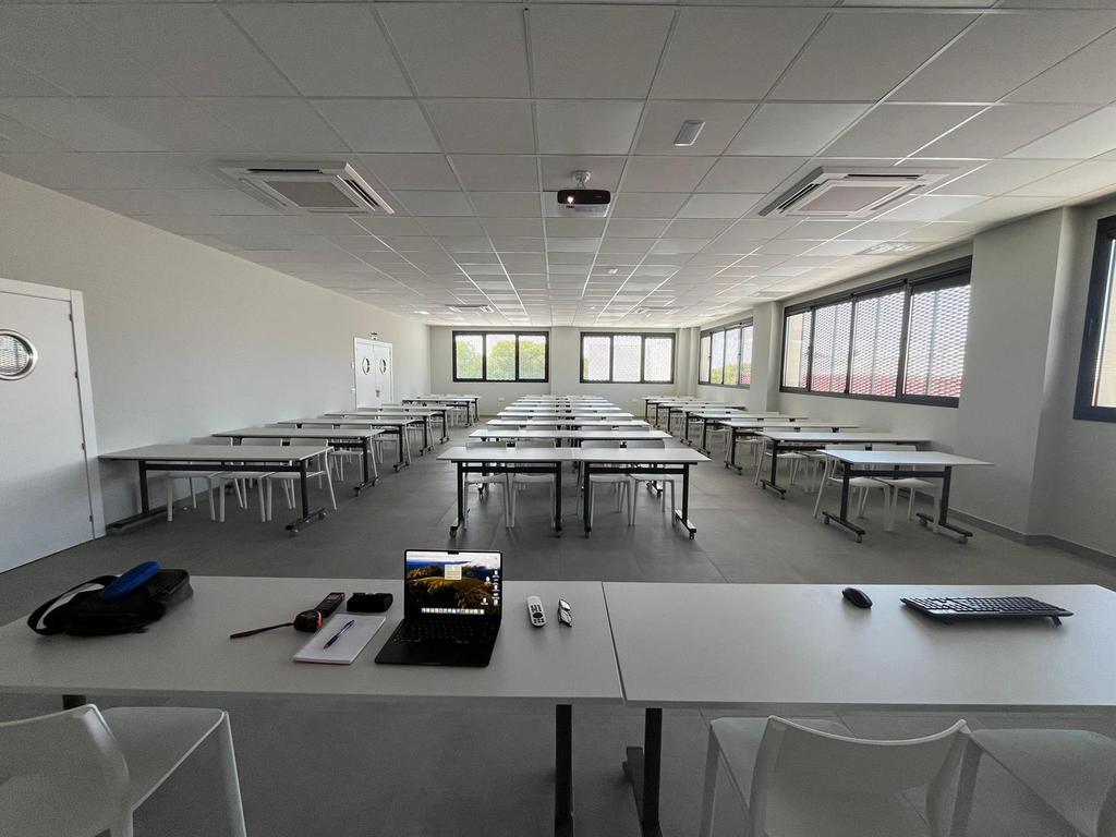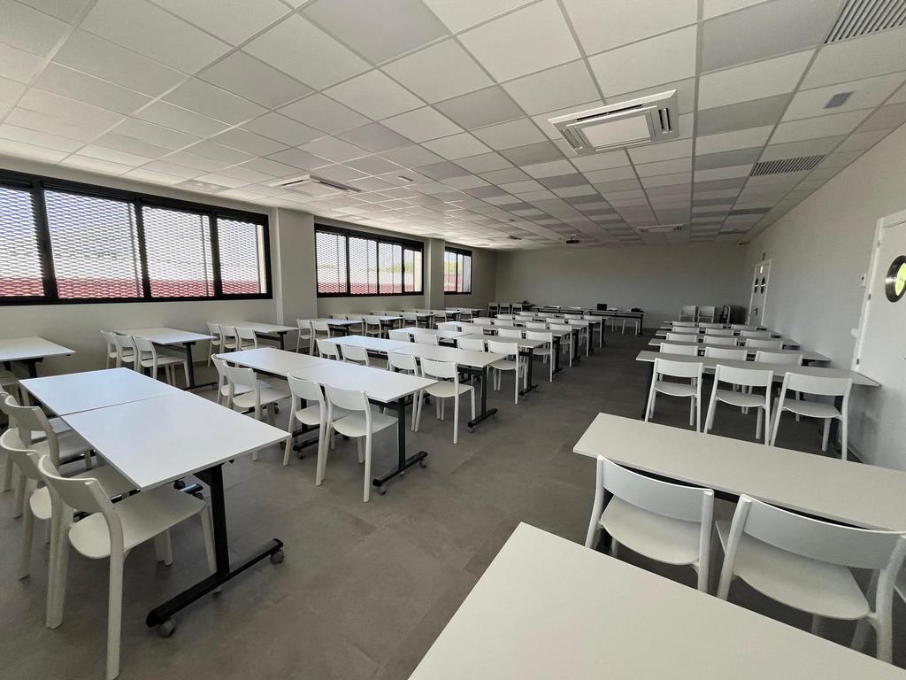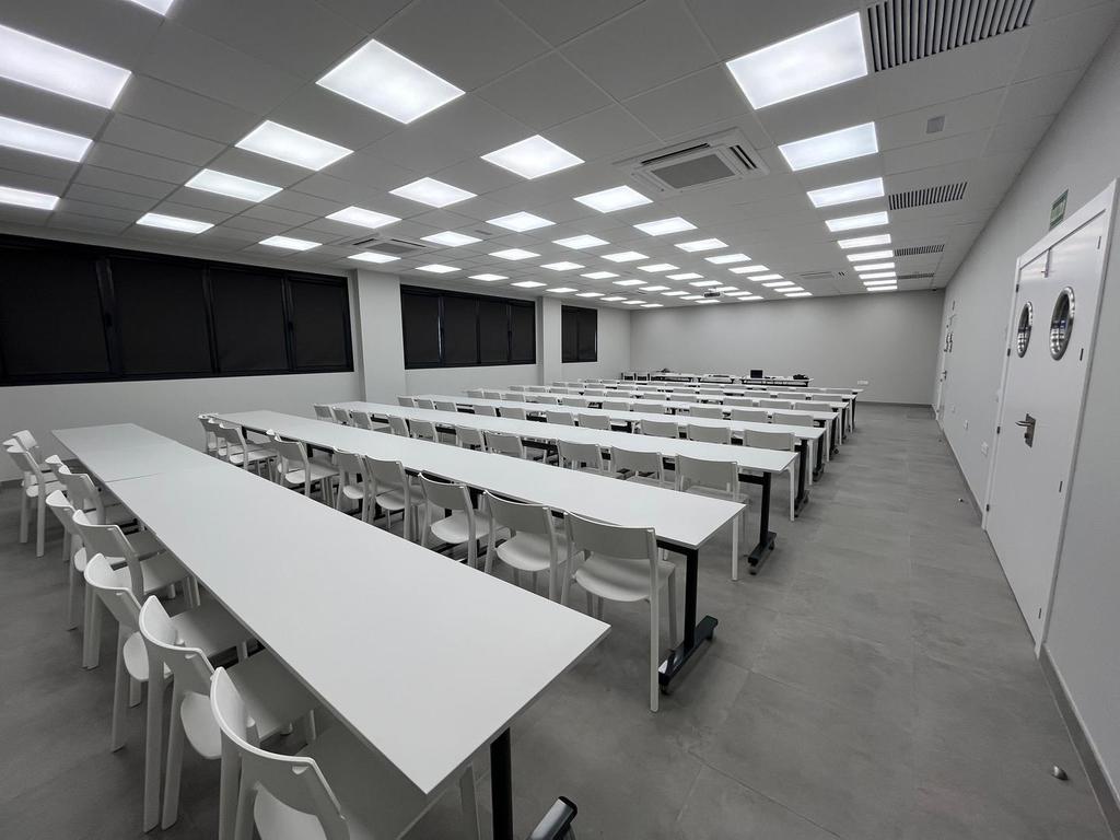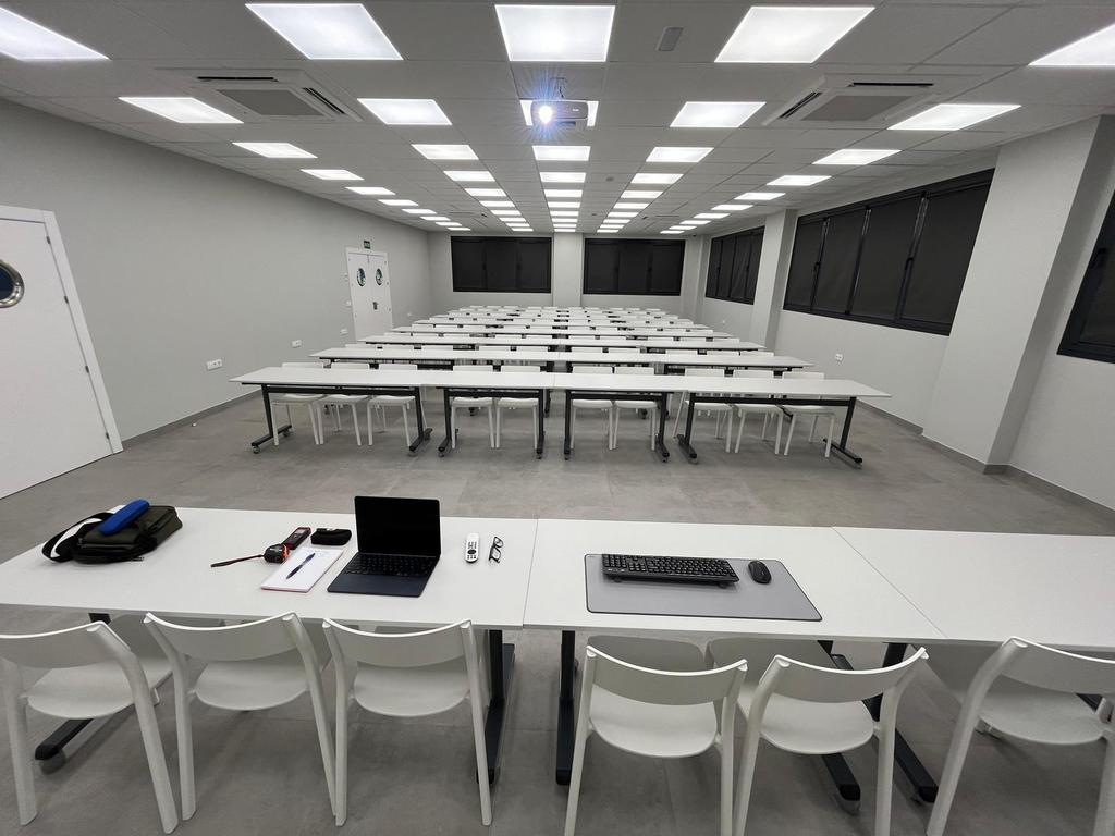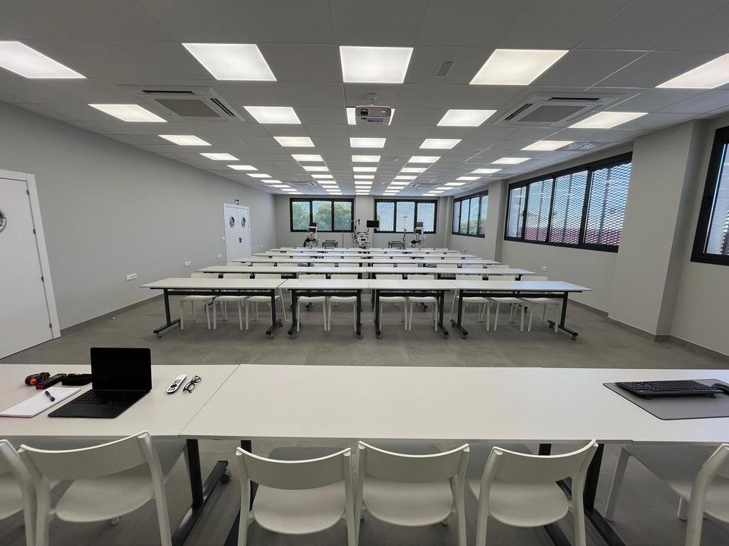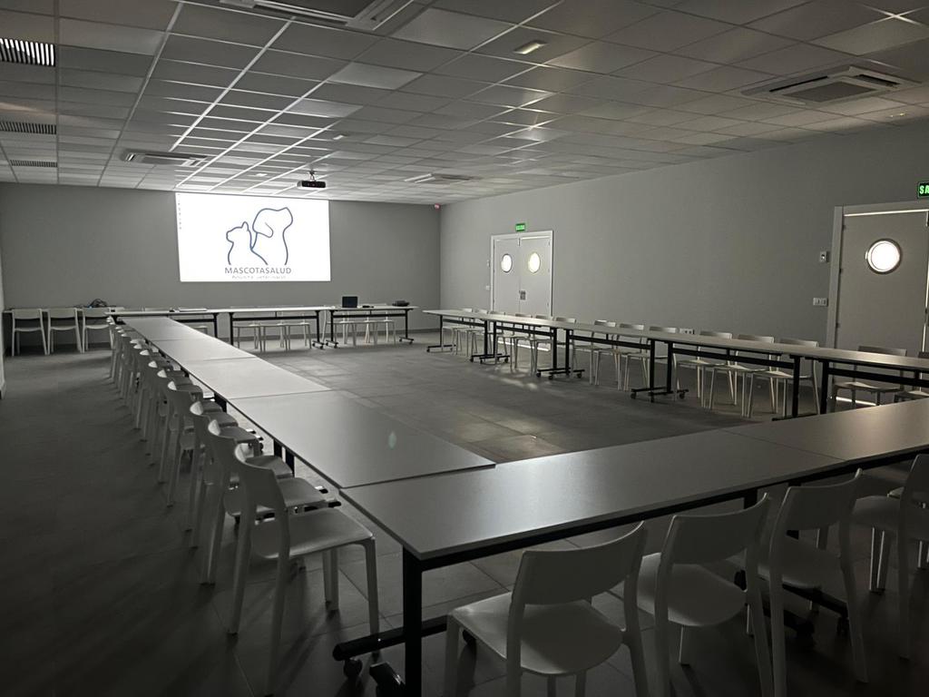 Además, dispone de varios puestos con mesas de prácticas, ideales para sesiones prácticas y demostrativas, fomentando un aprendizaje activo y participativo. El aula está disponible para alquiler, ofreciendo un espacio versátil y adaptado para cualquier tipo de formación, ya sea destinada a profesionales veterinarios, técnicos, estudiantes u otros sectores interesados.