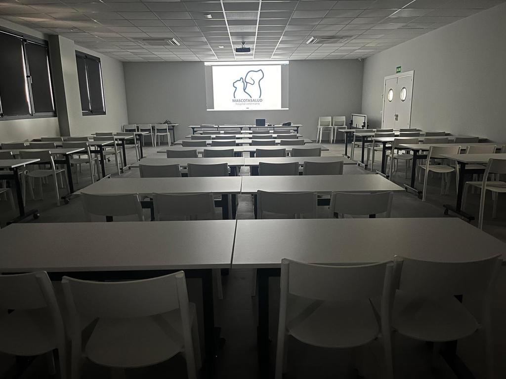 Nuestro hospital veterinario cuenta con un moderno Aula de Formación con capacidad para 120 personas, diseñada para ofrecer un espacio cómodo y funcional destinado a la enseñanza y actualización profesional. Este aula está equipada con tecnología audiovisual de última generación que facilita la realización de conferencias, seminarios, talleres y cursos especializados.